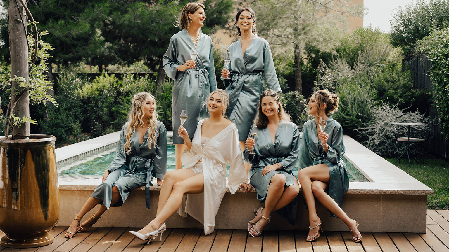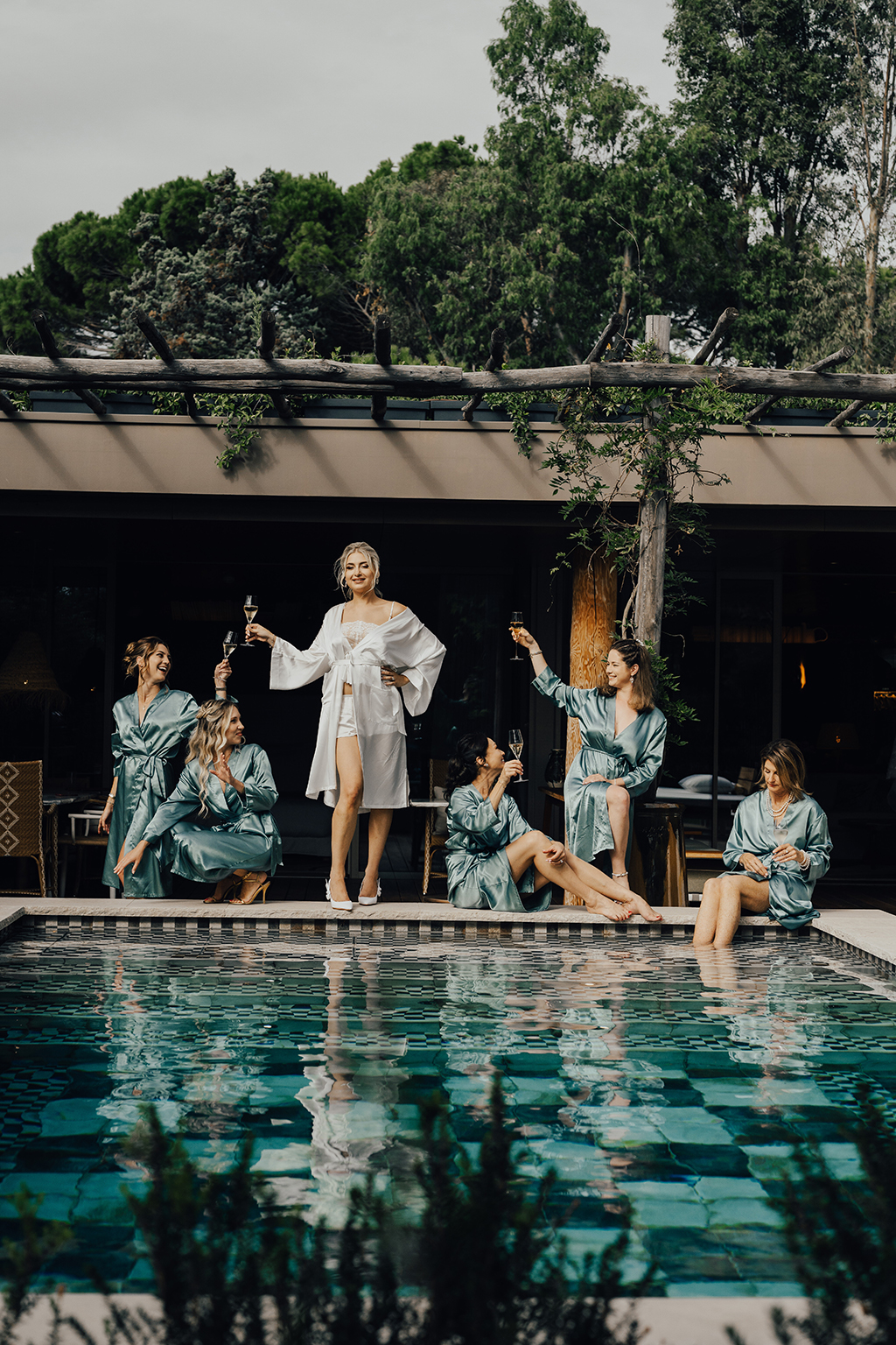 Nous nous attendrissons devant ce tableau féminin. Souhaitant mettre l’accent sur les préparatifs de la mariée et ce moment intimiste qu’elle partage avec celles qui témoigneront de son amour, Le nom : La Mariée et ses demoiselles d’honneur » prend tout son sens. Certaines vont s’inspirer des traditions américaines pour transformer ses préparatifs en vraie girl party avec leurs témoins et demoiselles d’honneur ! C’est cette ambiance et le lien particulier qui unit la mariée à ses demoiselles d’honneur que Chloé wedding planner a voulu mettre en avant en organisant ce shooting d’inspiration. Pour une organisation mariage Côte Azur, Lily of the Valley offre un cadre exceptionnel où chaque détail contribue à la magie de l’événement.